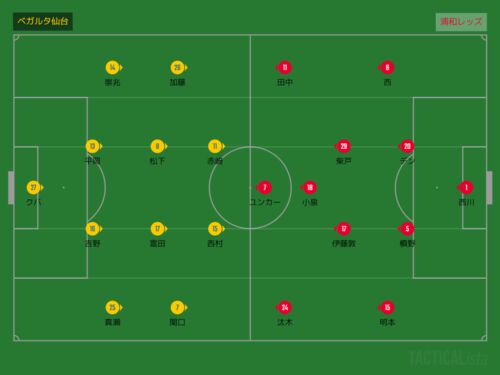 さて、今回は浦和レッズ戦を振り返ります。 ↓前節のレビューはこちら khigu-soccer.hatenablog.com ↓前回対戦のレビューはこちら khigu-soccer.hatenablog.com スタメン 前半 (1)サイドから前進を試みる浦和。サイドチェンジさせたくない仙台。 (2)ボール奪…